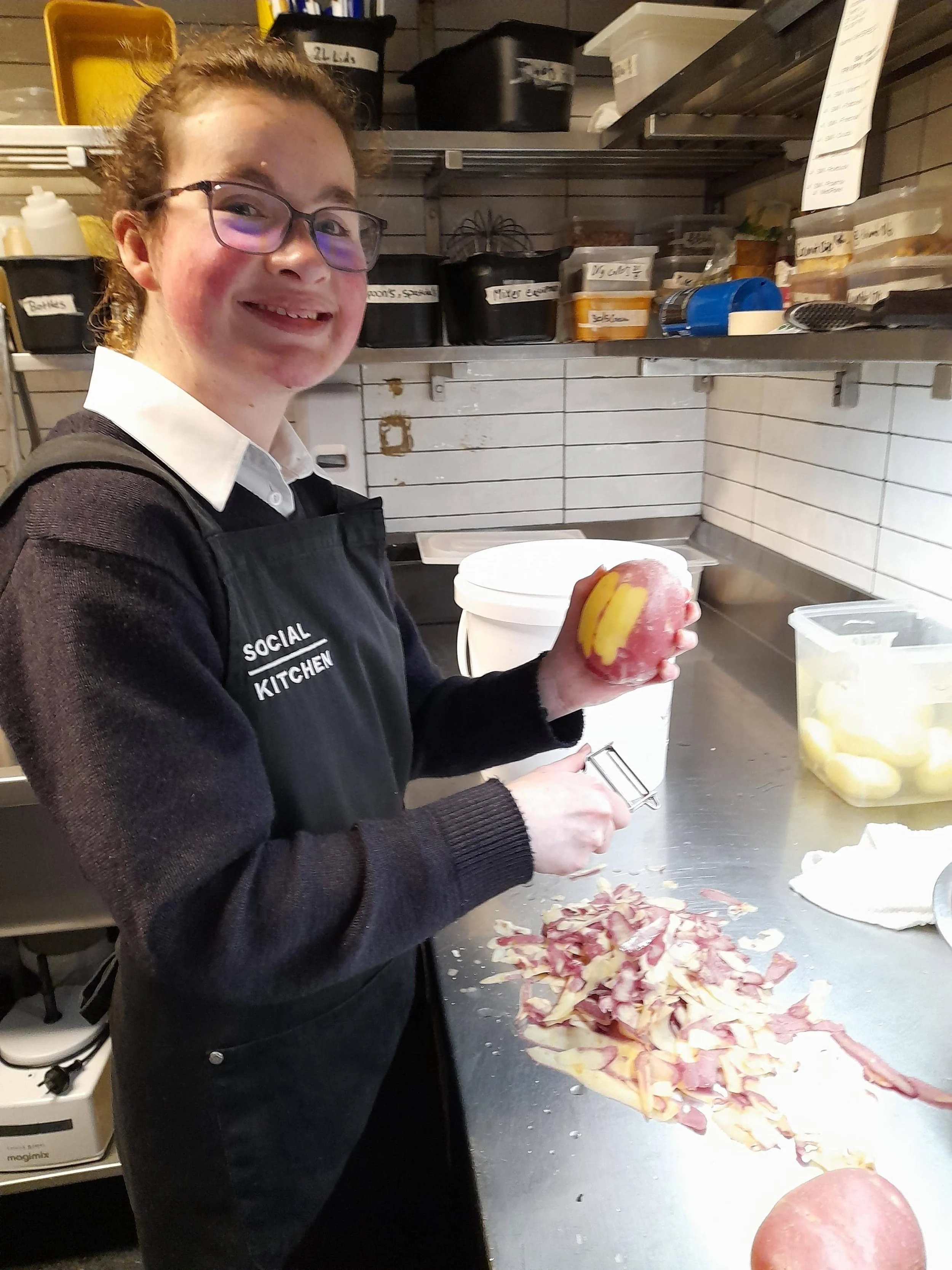 For the first shift, Marie accompanied Portia from school. They caught the bus to Social Kitchen together, and she stayed on while Portia found her feet before returning together.